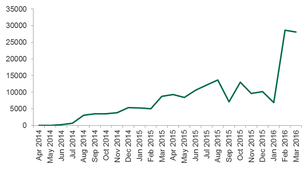 • The number of users attacked with mobile ransomware increased almost four-fold: from 35,413 users in 2014-2015, to 136,532 users in 2015-2016.