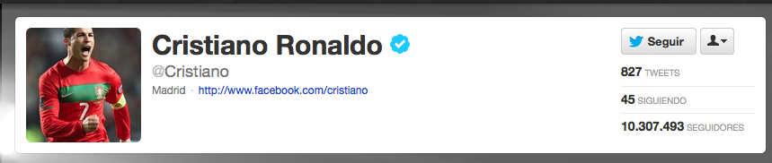En la víspera de un gran partido, la tensión previa al encuentro aumenta, incluso entre los aficionados. ¡Qué grande es acceder a las últimas noticias directamente de los jugadores a través de sus cuentas de Twitter! Pero, ¿cómo puedes estar seguro de que estas cuentas son auténticas?A veces es posible deducirlo por la cantidad de seguidores o de amigos que poseen: La cuenta del jugador del Real Madrid y de la Selección Portuguesa, Cristiano Ronaldo en Facebook, por ejemplo, le gusta a 45 millones de usuarios de la red social (https://www.facebook.com/Cristiano). Un panorama muy similar se da en Twitter, donde el crack luso tiene 10 millones de seguidores (https://twitter.com/cristiano).