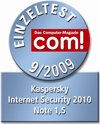 In tests conducted during September by a fourth magazine, com!, Kaspersky Internet Security 2010 yet again demonstrated excellent results. The magazine’s experts praised the product’s ease of use, Safe Run technology and its high scanning speed.