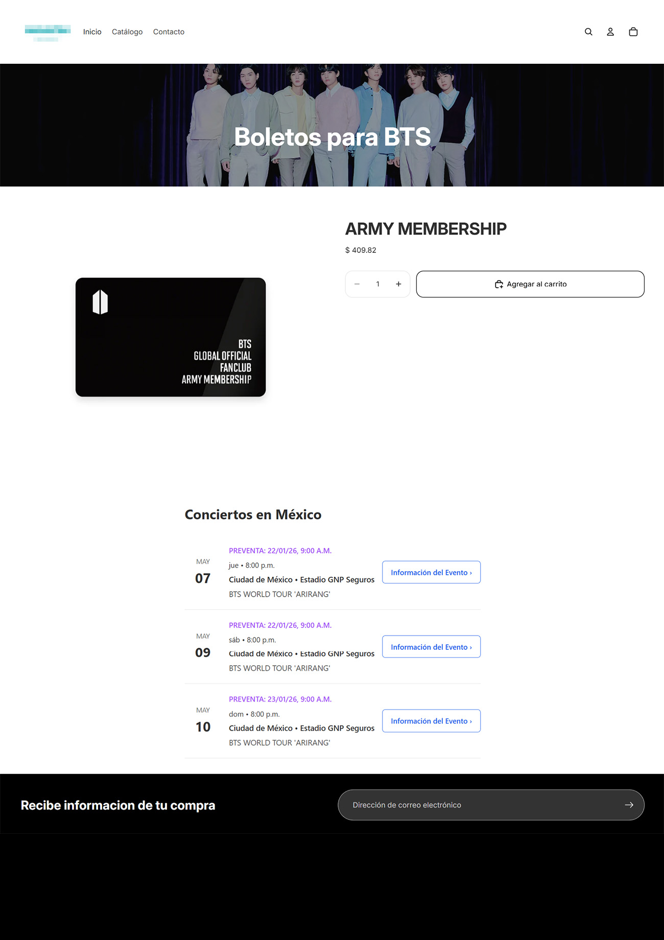 BTS, un fenómeno global del k-pop, ha regresado recientemente tras una pausa de casi cuatro años: los miembros del grupo estaban completando el servicio militar obligatorio en Corea del Sur. Por esta razón, no es de extrañar que los ciberdelincuentes se hayan aprovechado de la muy esperada gira mundial de la banda, ARIRANG, para lanzar una campaña de sitios web falsos dirigida a los fans ansiosos por comprar entradas.