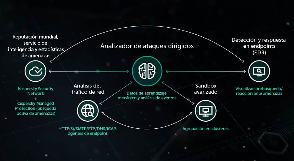 Basada en un núcleo de aprendizaje automático, la plataforma combina funciones avanzadas de detección mediante análisis estático basado en el comportamiento, reputación en la nube, sandbox y motores de detección basada en patrones, todo ello con un analizador de ataques dirigidos.