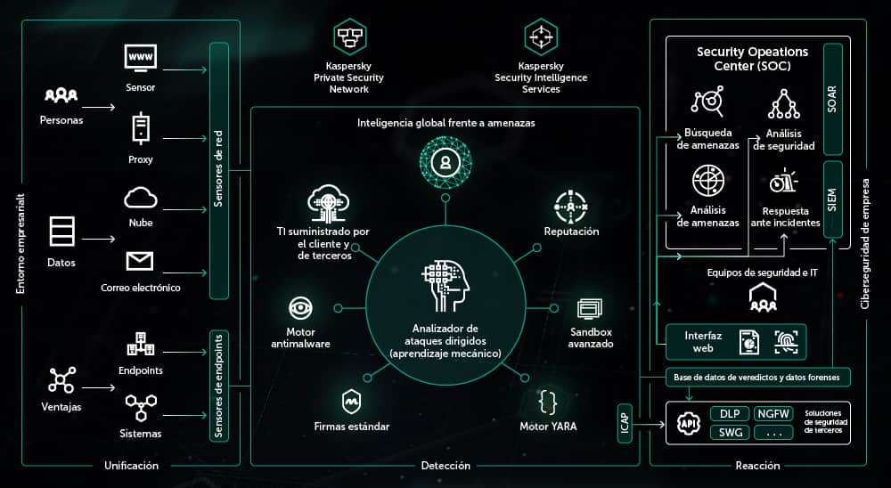 La seguridad corporativa debería servir de catalizador para acelerar la innovación, ser una piedra angular de la estrategia de la empresa digital, identificar y mitigar de forma proactiva los riesgos y reducir el impacto de la interrupción de la actividad digital de acuerdo con la visión general de la empresa. La plataforma Kaspersky Anti Targeted Attack permite a las empresas detectar ataques dirigidos y amenazas sofisticadas, así como reconocer sistemas ya vulnerados, basándose en inteligencia sobre seguridad líder y en tecnologías de aprendizaje automático avanzado.
