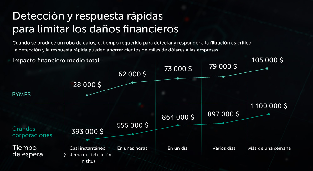 Es cada vez más complicado evitar los incidentes de seguridad de la información. Sin embargo, aunque puede que no siempre sea posible detener los ataques antes de que penetren en su perímetro de seguridad, está absolutamente en nuestras manos limitar el daño y evitar la propagación del ataque . Todo el peso de nuestra experiencia práctica mundial se aplica a la resolución del incidente de seguridad.