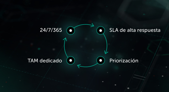 Su responsable técnico de cuenta dedicado está capacitado para utilizar a cualquier experto de Kaspersky Lab en su favor y asegurarse de que su problema se trate con la máxima prioridad y se solucione completa y rápidamente.