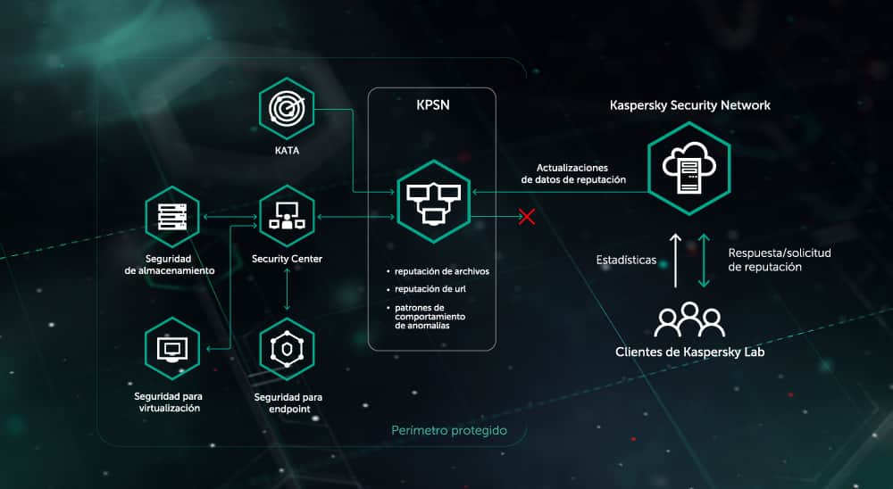 Las amenazas complejas y dirigidas tienden a infligir un daño muchísimo mayor del que el malware masivo puede generar. Ante tal entorno de amenazas, el valor de la inteligencia de seguridad que ofrece Kaspersky Security Network no se puede sobrevalorar. Mediante el uso en tiempo real de datos procedentes de 80 millones de sensores a nivel mundial, cada objeto que pasa por los sistemas protegidos por las soluciones de Kaspersky Lab se somete a los análisis basados en la inteligencia sobre amenazas más pertinentes.