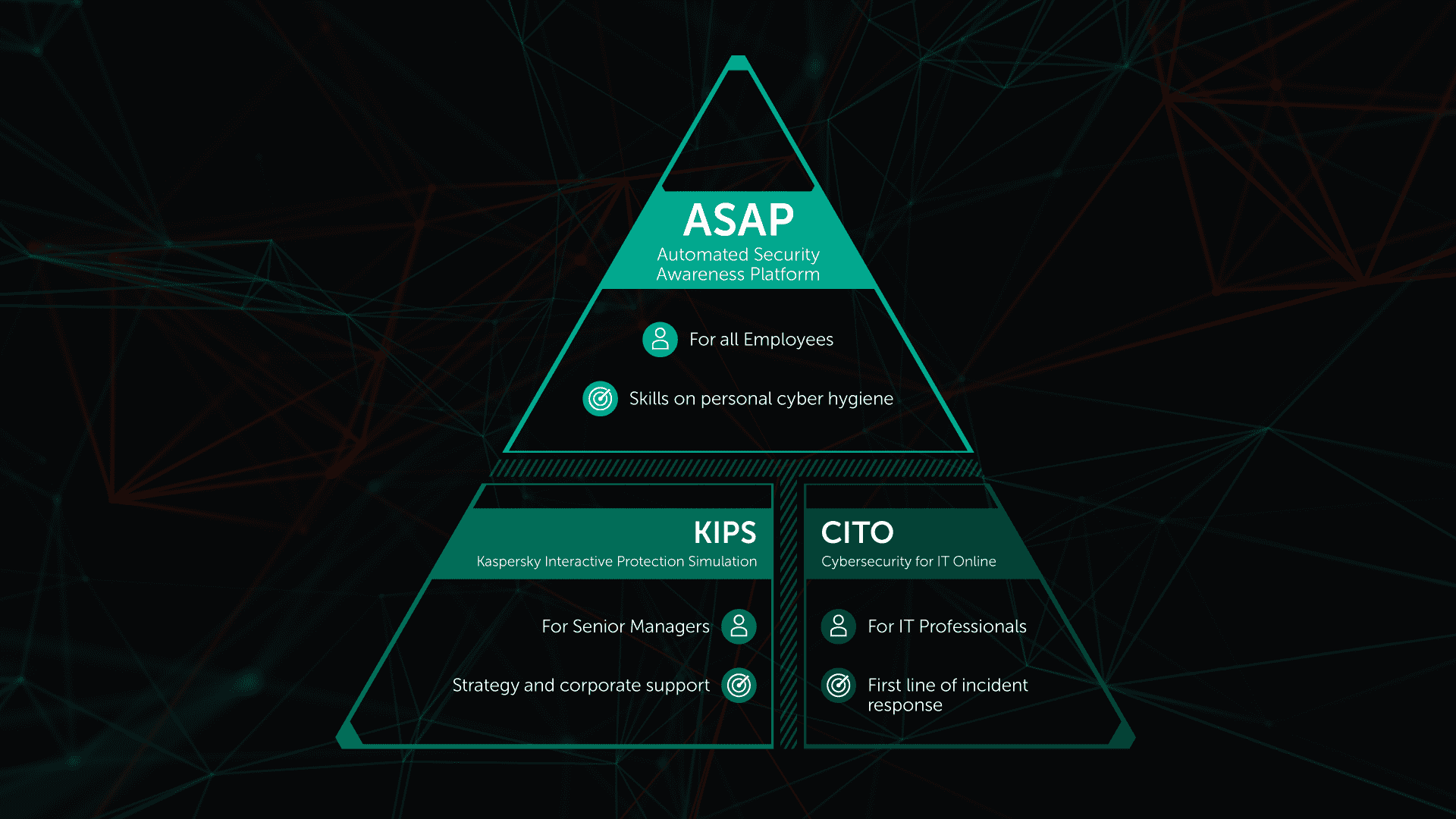 Kaspersky Security Awareness crea un ciberentorno corporativo sólido y autosuficiente mediante un enfoque de aprendizaje visual, lúdico y de toda la empresa. Esta es la única manera de luchar de forma eficaz contra los errores humanos, que son el mayor ciberriesgo de las empresas actuales.