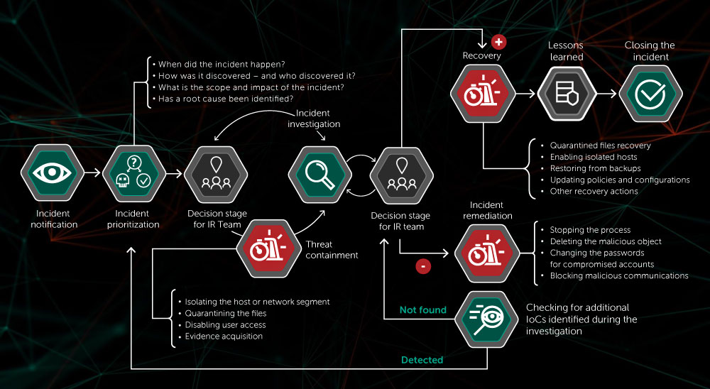 Los especialistas con extensos conocimientos, y provistos de una amplia experiencia práctica en la lucha contra las ciberamenazas, le ayudan a identificar, aislar y bloquear la actividad maliciosa rápidamente