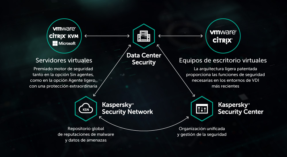 El factor más importante en cualquier estrategia de seguridad corporativa es una solución completa que proporcione altos niveles de protección de procesos y datos empresariales junto con capacidades de seguridad amplias que combatan las amenazas avanzadas. No importa lo que incluya la infraestructura de IT (escritorios, servidores, sistemas de información, centros de datos o equipos virtuales), necesita una solución de seguridad diseñada especialmente para ofrecer niveles de seguridad óptimos a todos los componentes.