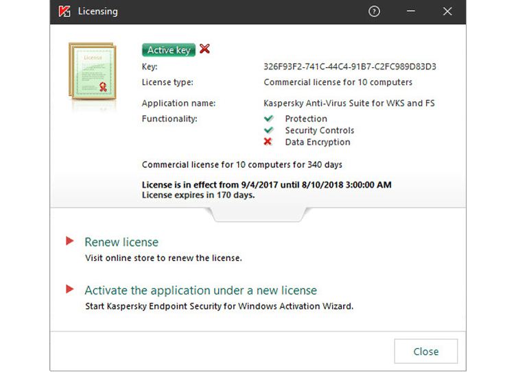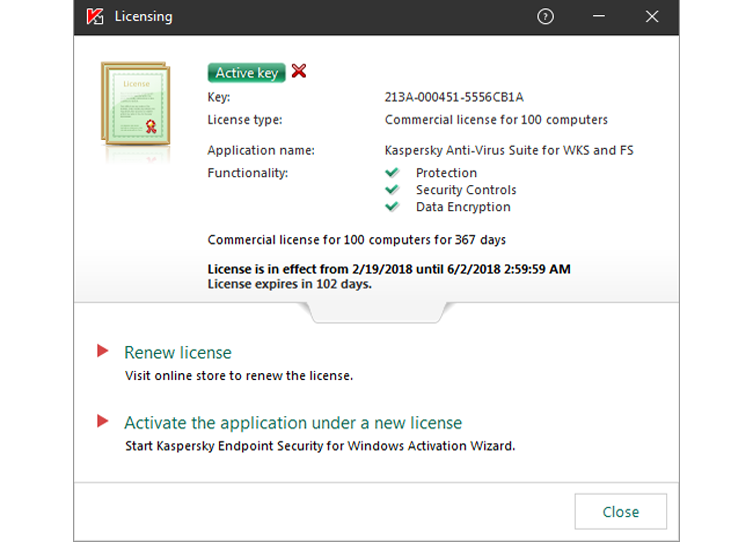 Renueve su licencia ahora mismo para garantizar la protección continuada de su empresa. Solo tiene que introducir la información de su licencia para obtener la renovación a un precio especial para clientes habituales. Las capturas de pantalla que aparecen a continuación le ayudarán a encontrar la información correcta de su producto.