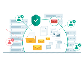 Grandes cantidades de información empresarial y personal se almacenan dentro de los sistemas de correo electrónico y en los servidores. Le ayudamos a proteger todos estos datos confidenciales contra daños, así como a evitar que el malware se propague a través de ellos.